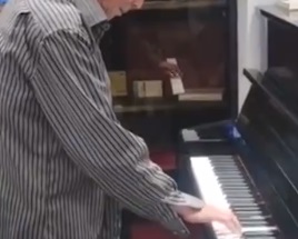 9月23日,在江苏无锡,一位老爷爷在酒足饭饱后,走到钢琴旁,弹了起来。从手法上看,跟专门学过的一样。老人弹了几下后,就停了下来,憨厚地笑着。